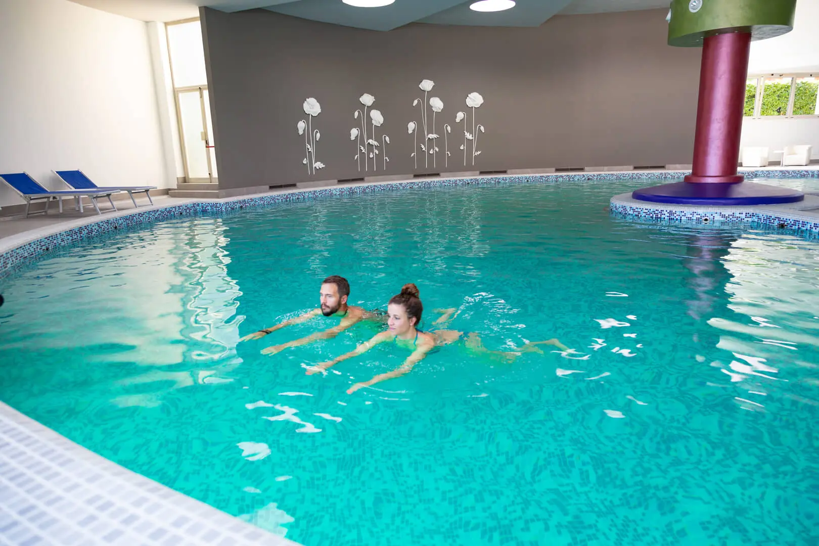 - 3 piscine termali, di cui 2 comunicanti, con 24 postazioni idromassaggio e cascate cervicali